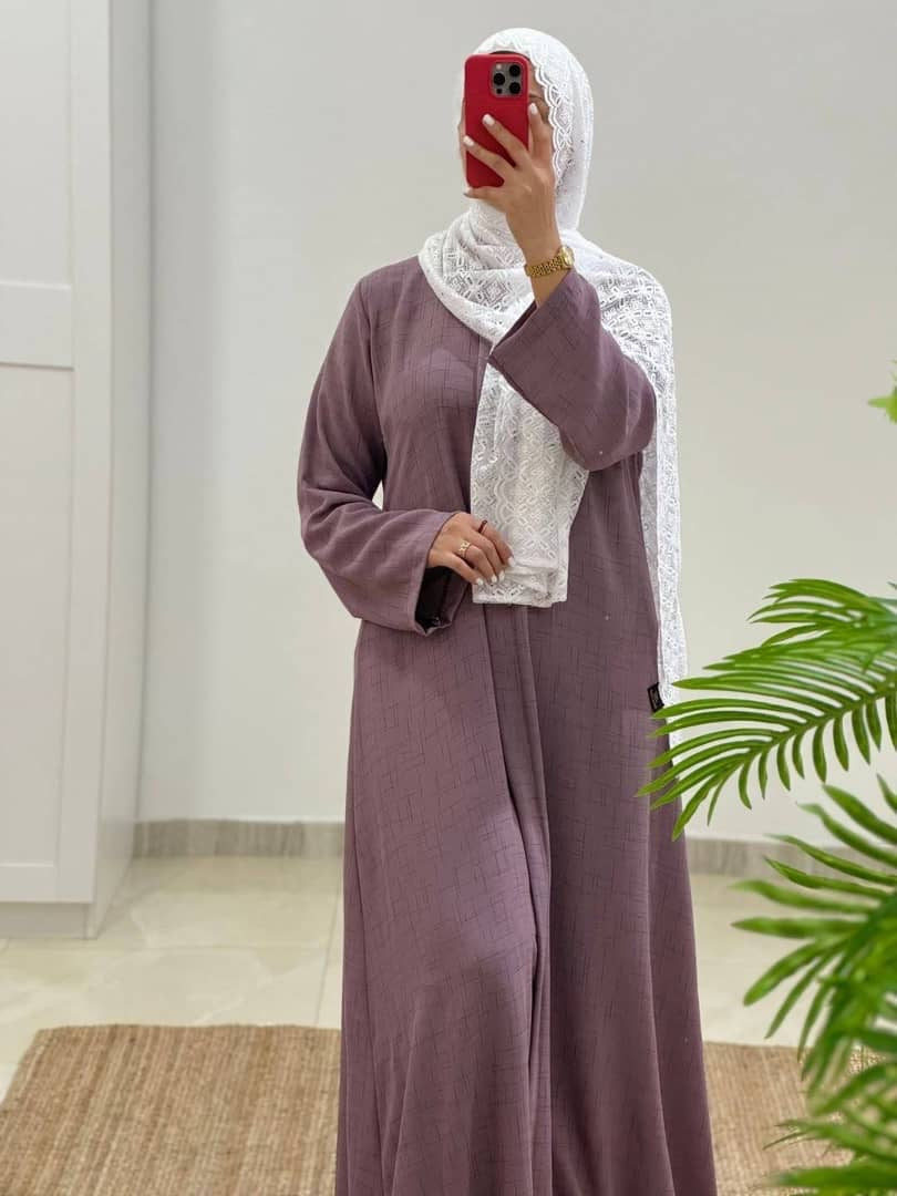 Mauve Textured Modest Abaya – Elegant Everyday Wear